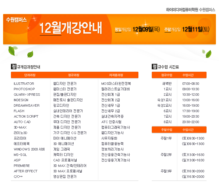 [정규개강] 2010년12월 수원캠퍼스 정규개강안내