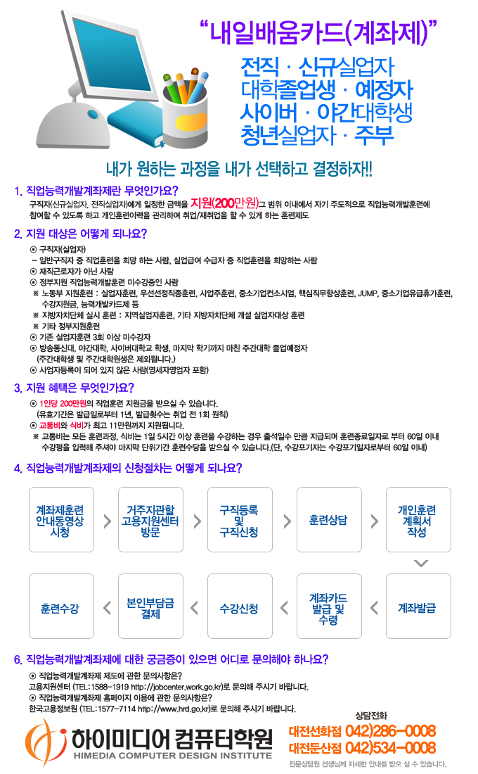 전에는 계좌제로 알려져 있던 내일배움카드제의 안내입니다.