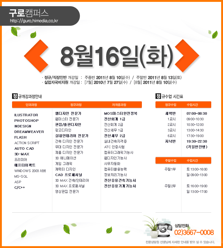 [정규개강안내] 08월 직장인 및 일반, 내일배움카드개강일 안내
