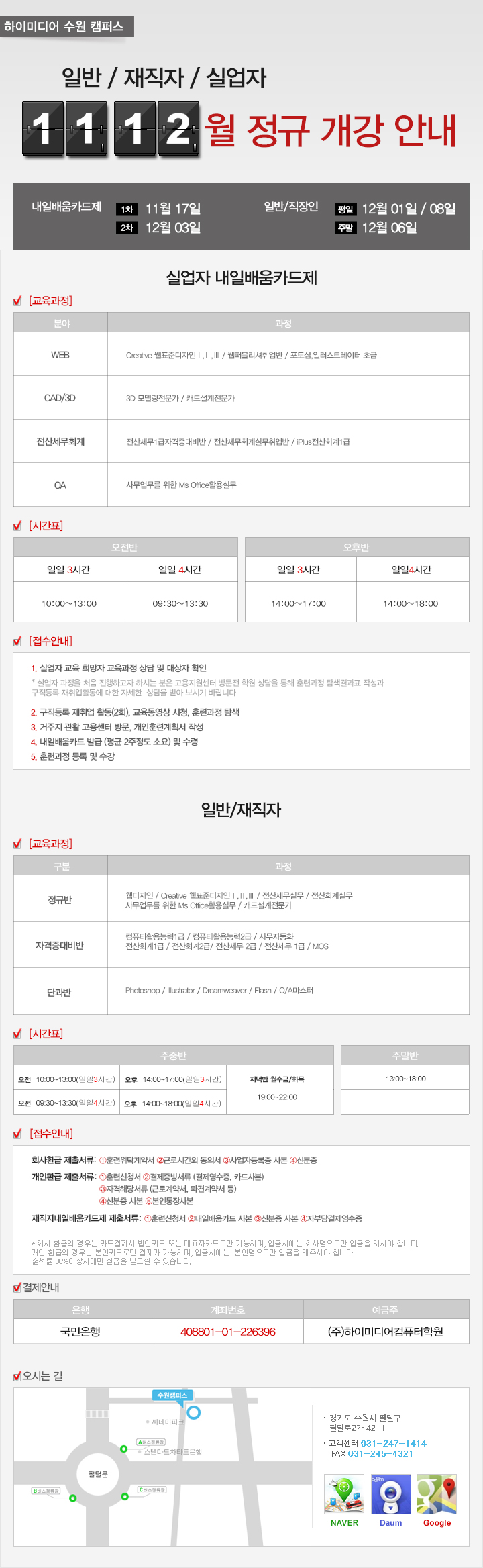 수원캠퍼스 11,12월 개강안내