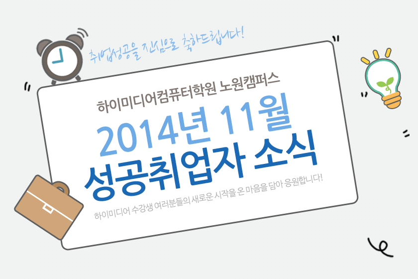하이미디어컴퓨터학원 노원캠퍼스 2014년 11월 성공취업자 명단입니다.
