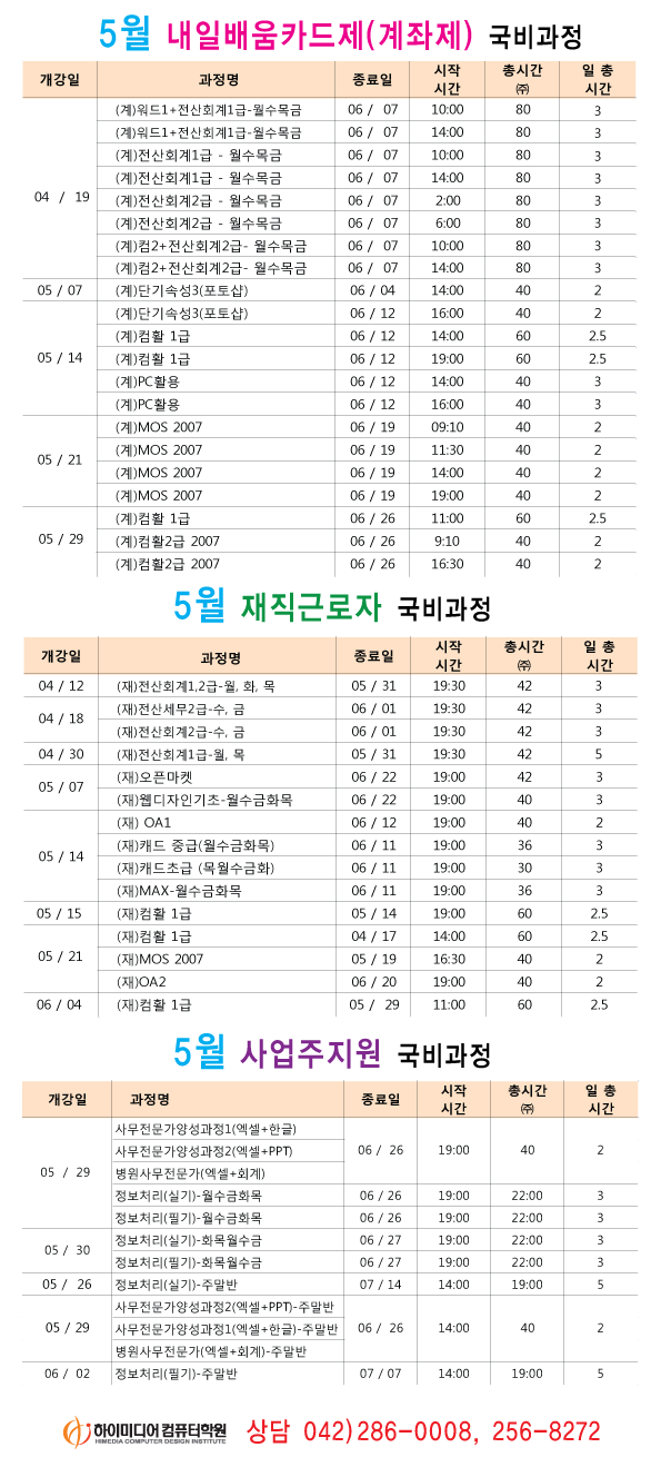 [정규개강]2012년 5월 개강일정입니다.(대전캠퍼스)